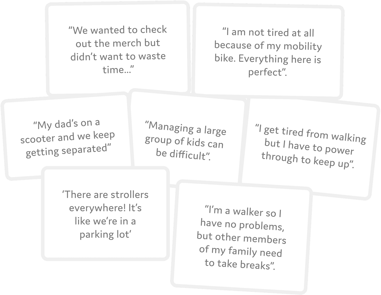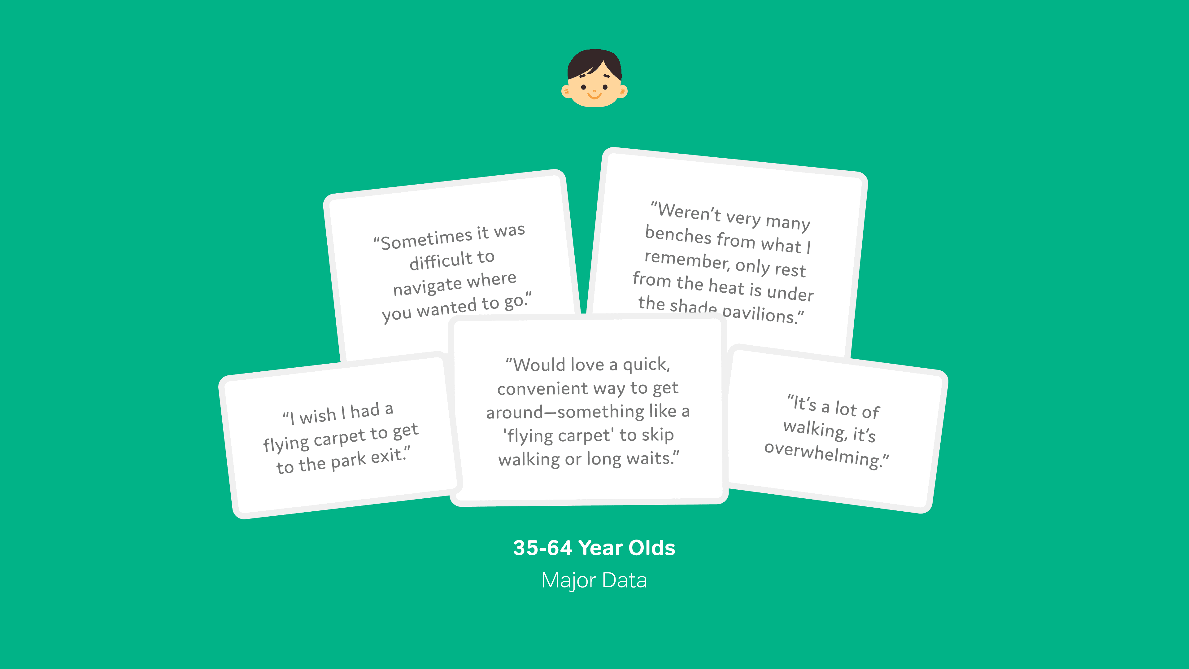 We conducted eight in-depth interviews with kids, parents, and grandparents to uncover personal challenges during their Disney visits.