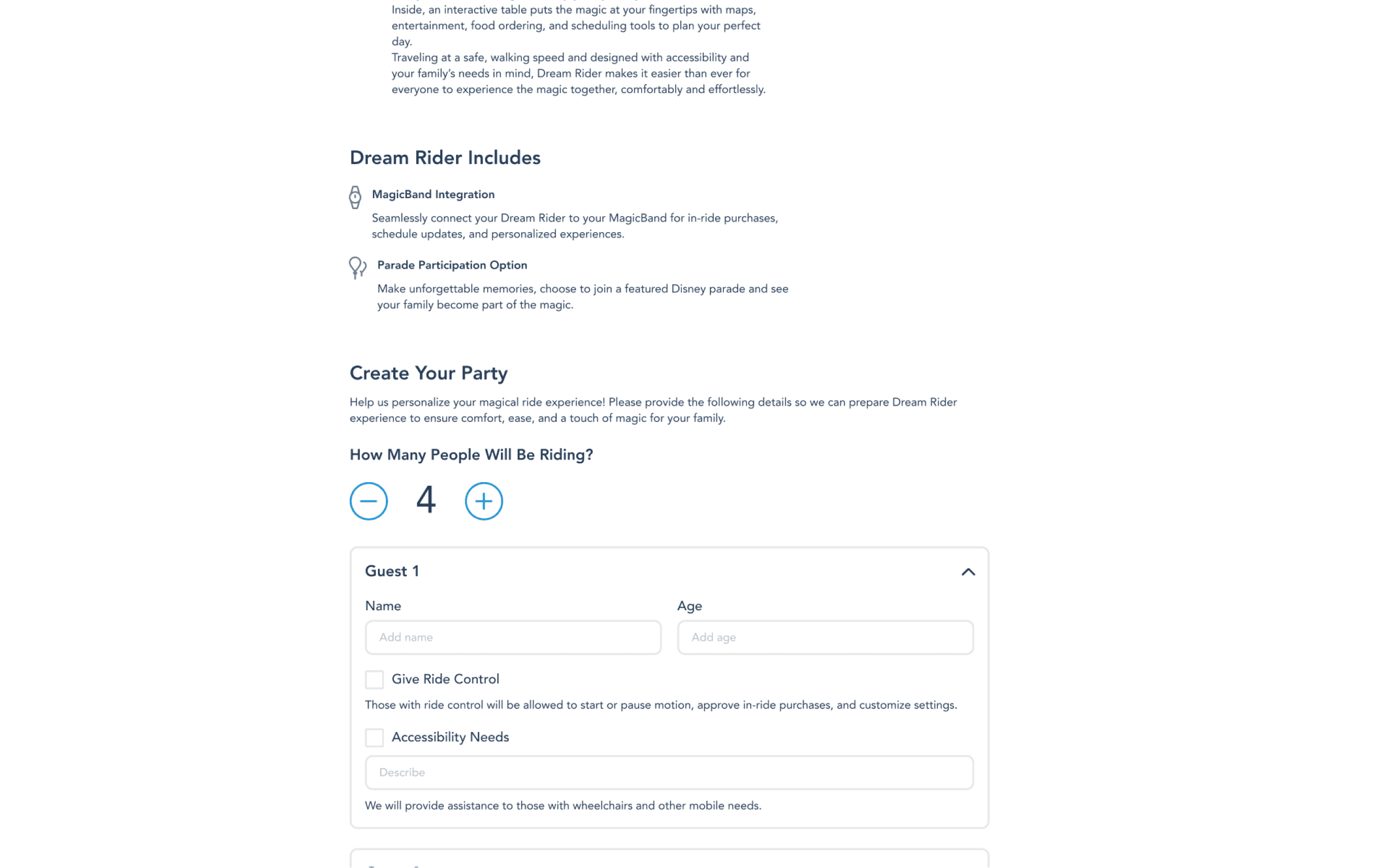 Those with ride control will be allowed to start or pause motion, approve in-ride purchases, and customize settings.