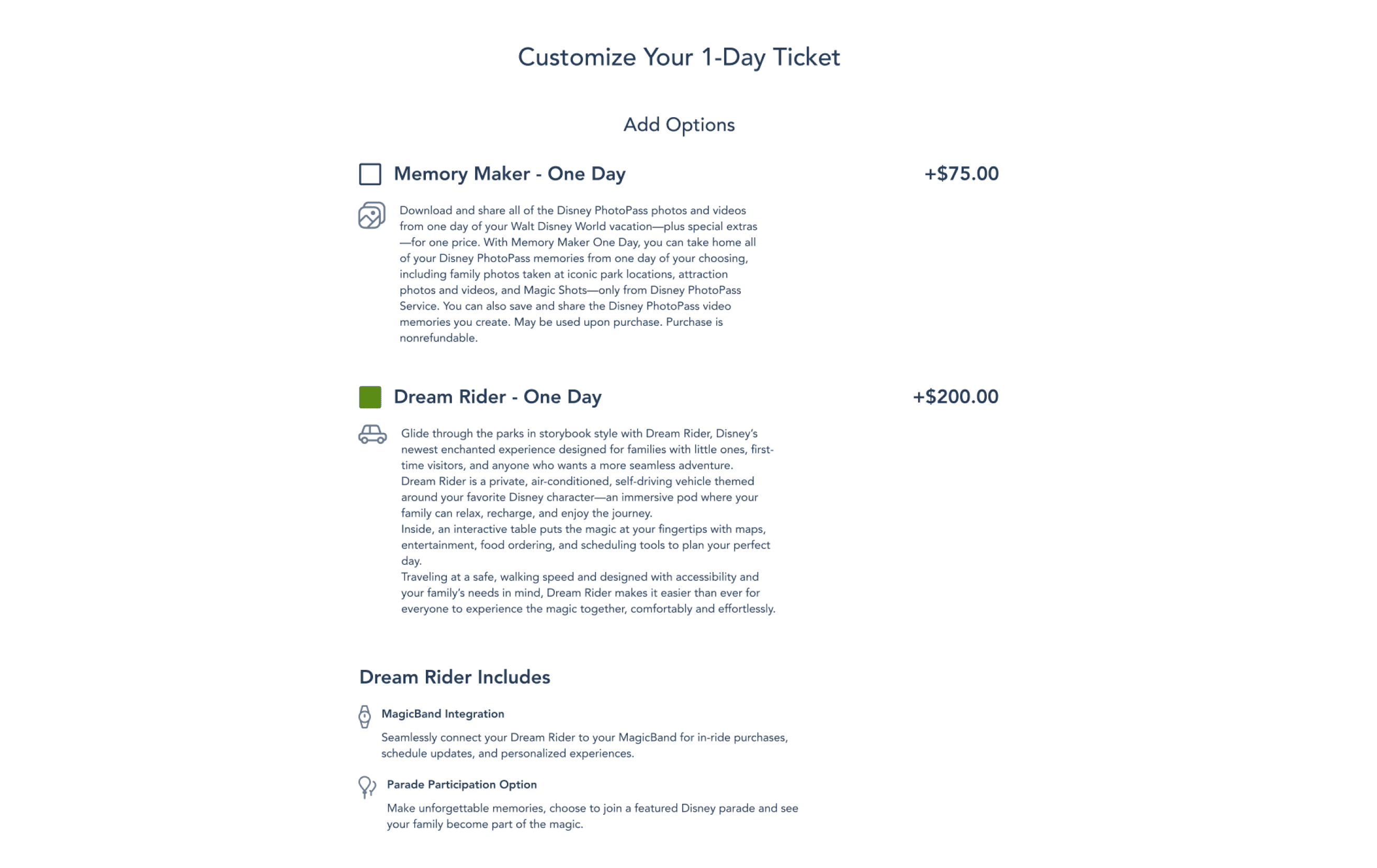 Seamlessly connect your Dream Rider to your MagicBand for in-ride purchases, schedule updates, and personalized experiences.