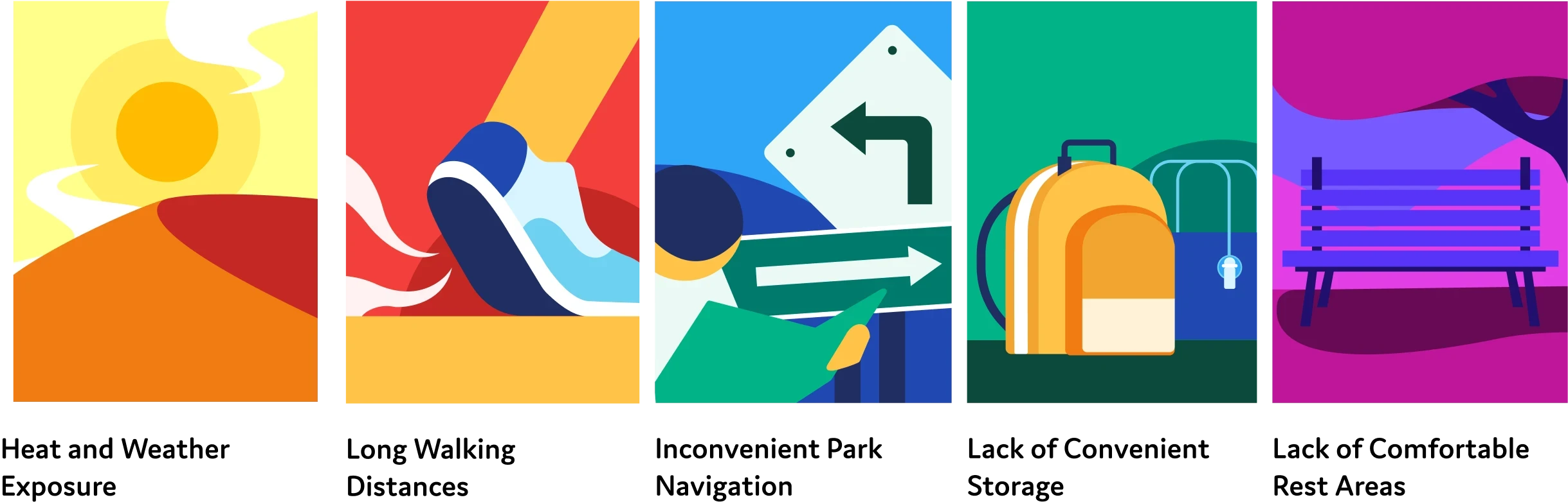 Shaded seating is rare, lockers are only at the front of the park, and in-park transportation is practically nonexistent. This fatigue is most heavily felt by young children, older adults, and families navigating the park together.