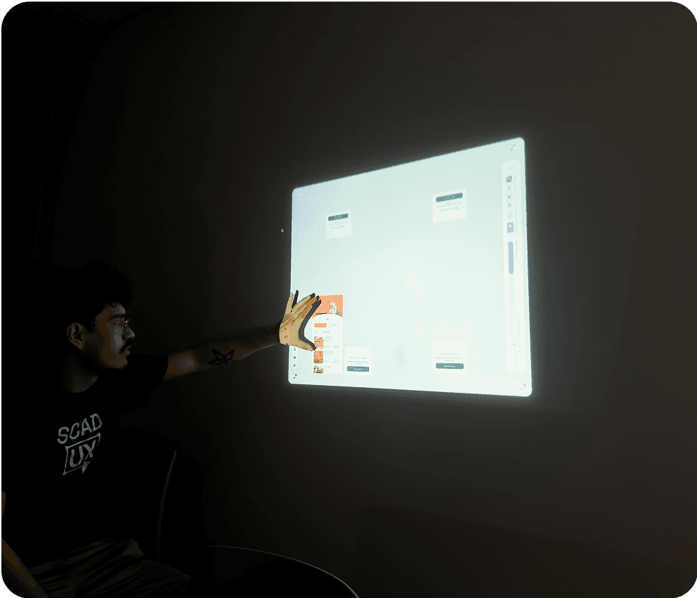 How do you test on a screen that doesn't exist? We projected the UI onto tabletops for interactive testing, allowing participants to navigate the interface in real time.